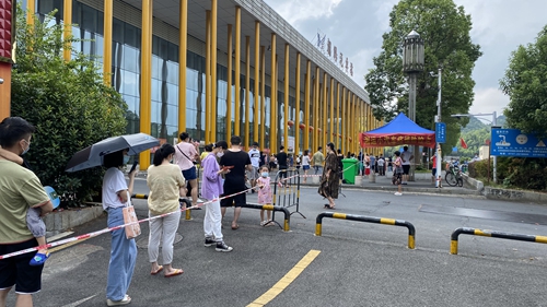 8月5日早上8時許,筆者在朝陽汽車站看到:從車站西門到迎賓西路一條150余米的“長龍”間隔均勻,在隔離線內(nèi)有序排隊、慢慢往前挪動著。這是益陽湘運(yùn)車站積極配合益陽市城區(qū)全民免費核酸檢測工作的一個場景。