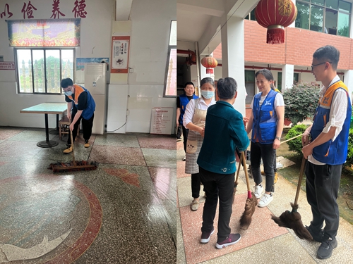 志愿者們的到來,讓小院洋溢著溫馨和喜悅的氣氛。在食堂里、過道上、房間內(nèi)……隨處可見志愿者們的身影,有推著輪椅車帶老人散步的,有幫老人清理物品的,他們用拖把把地板拖得干干凈凈,把門窗、桌椅都擦得一塵不染。