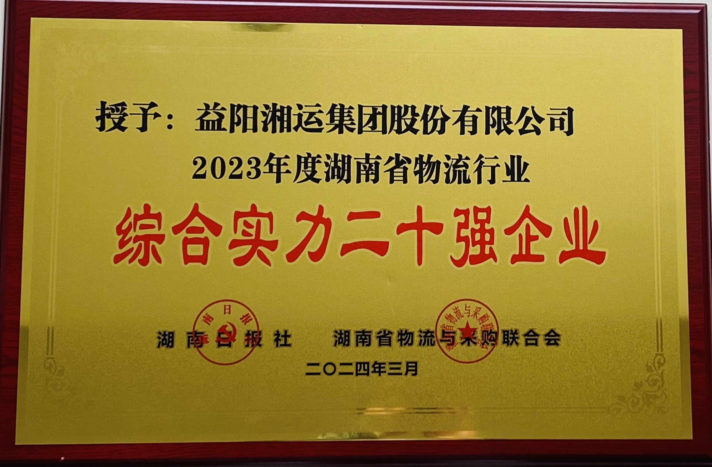 3月26日,益陽(yáng)湘運(yùn)集團(tuán)股份有限公司獲“2023年度湖南省物流行業(yè)綜合實(shí)力二十強(qiáng)企業(yè)”。