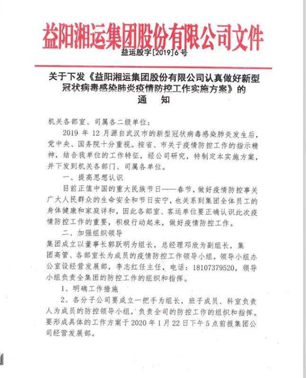 益陽湘運(yùn)集團(tuán)股份有限公司正式發(fā)文,對集團(tuán)疫情防控工作作出了全面部署。