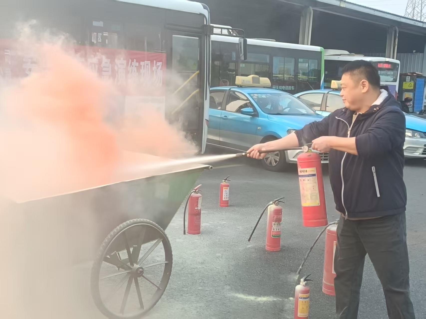 演練模擬一輛正在站場待發(fā)的客運(yùn)班車因電路故障突發(fā)“起火”。駕駛員發(fā)現(xiàn)火情后立即停車斷電,開啟應(yīng)急車門,并高聲提醒乘客保持冷靜。乘務(wù)員迅速協(xié)助乘客有序撤離車輛。同時,駕駛員取出車載滅火器對準(zhǔn)火源根部噴射,控制火勢蔓延。演練全程緊張有序,各環(huán)節(jié)銜接緊密。強(qiáng)化了員工對車輛火災(zāi)的快速響應(yīng)、乘客疏散及初期撲救能力。 (謝可明)